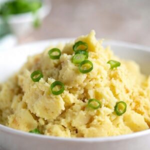 4. Spoon into a serving bowl and top with a pat of extra butter (it melts in beautifully), sliced green onions, and any herbs you love.